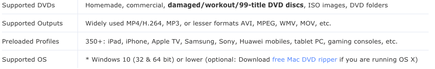 - Ability to convert your DVD or folder into numerous supportable output format like Mp4, WMV, MP3 which can be viewed on various digital devices like PC, tablets or mobiles.