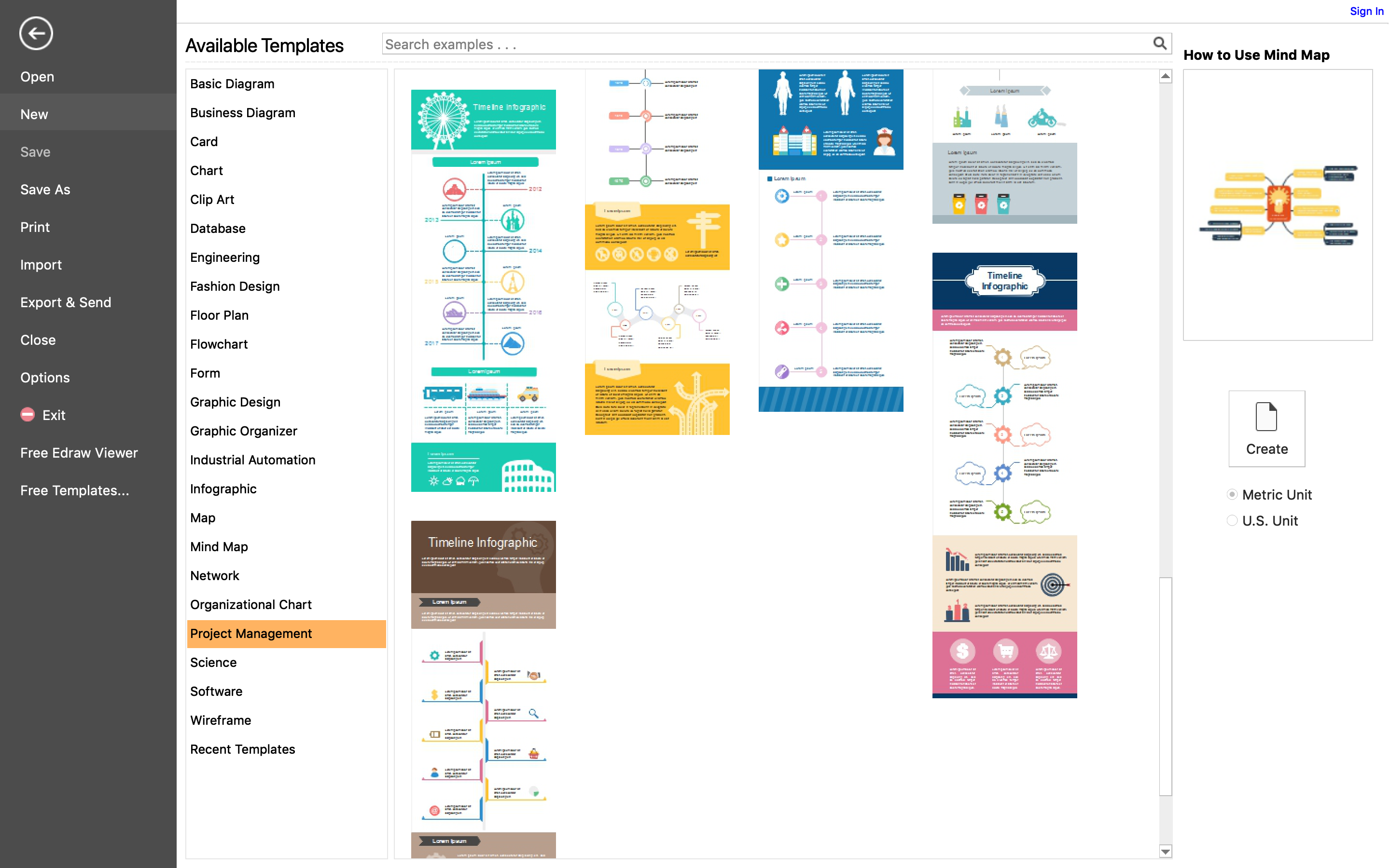 This process is easier than you have ever imagined. The first step is, of course, downloading Edraw Max and installing it on your computer. Once you are done, the intuitive Wizard would welcome you to the program. Here, you have two options: one, you can start creating a diagram from scratch; two, you can use one of the hundreds of templates that Edraw Max is offering. The collection starts from Basic Diagrams but even goes to tougher areas like Industrial Automation and Infographics.
