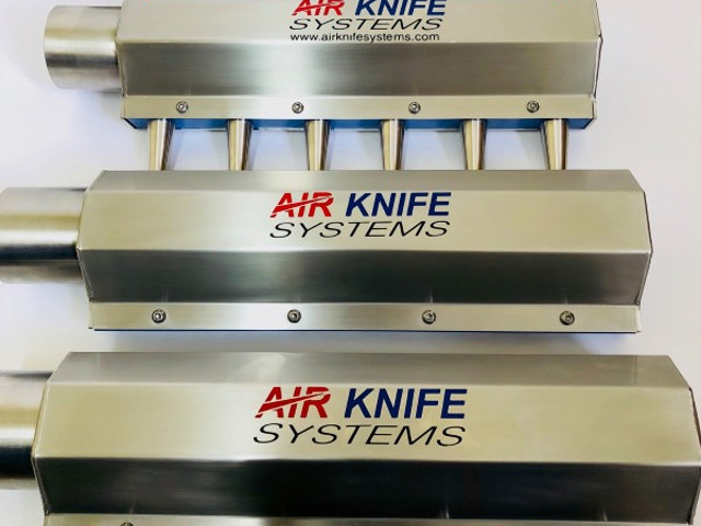 Finally, air knives can be used in the packaging process. Hot plastic packaging materials, formed into smaller packages via sealing tools, can be quickly cooled and any static removed before the individual packages are loaded into shipping containers.