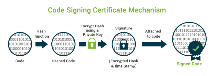 By purchasing a code signing certificate, the certification authority or CA for short manages and has the responsibility to approve software code.