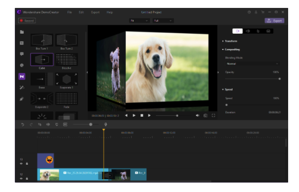 The sign of a smooth video is its transition. When a video clip jumps to another clip, the transition is meant to be very meaningful and systematic. DemoCreator has made it very comprehensible for you to choose among transition and then directly drag it to the end of the start of your video clip. There are many impressive transitions with numerous 3-D effects that make the user more absorbed and fascinated.