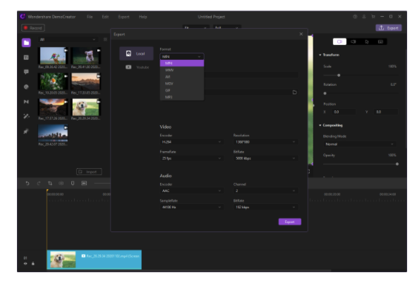 After you are done with your editing, Simply, press the export button present on the top right side of the interface. On export the DemoCreator will ask the desired quality as well as the format which can be MP4, WMV, AVI, MOV, GIF, MP3 formats.