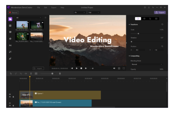 The DemoCreator has been automated for your ease. As soon as you stop recording it takes you to the Video Editing interface.
