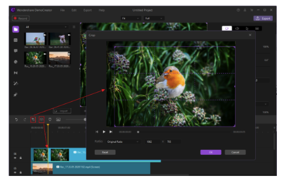 You can remove all the unwanted parts of the video by simply placing the marker at that instance and then cutting it. DemoCreator also allows cropping your video to remove any undesirable content on the screen. Both these options are just over the story bar.