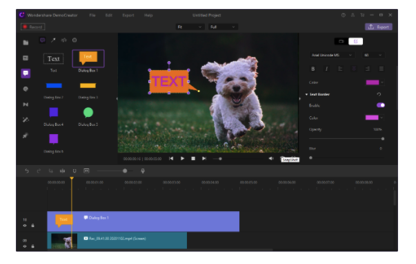 Sometimes we come across a situation in which you want your viewer to have additional information on some topic. In order to highlight the information, DemoCreator has numerous dialog boxes to use. The option is readily available on the left side right below the title option.