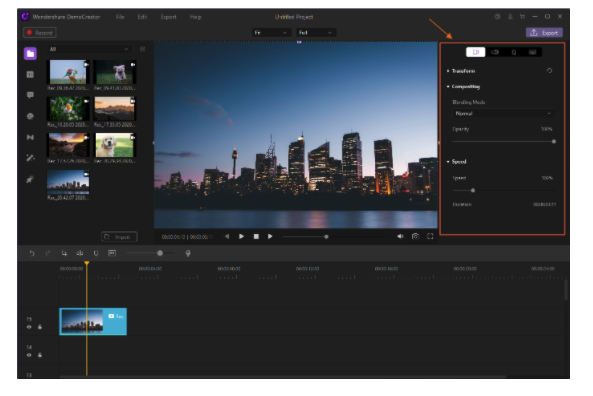 • Whereas the right most section in Information and settings section which allows to Transform, Compost, adjust speed and denoise your video and audio content.