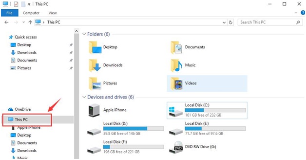 Close all the open programs and files first and go to Start > File Explorer > This PC.