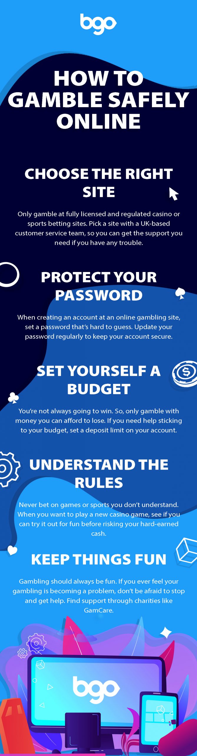 To help you get you off to the right start, we’ve teamed up with bgo.com to list some top tips for gambling safely online. So, whether you’re looking to spin a few online slots or enjoy a flutter on the horse, check it out in our infographic.
