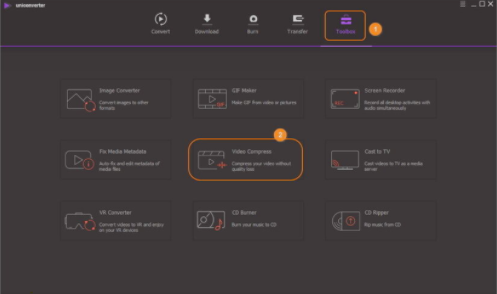 Step 1 – The first step in the process is to download and install Wondershare Uniconvertor software. Once the installation is complete, launch the software. After this, choose the Video Compress option, as shown in the image below.