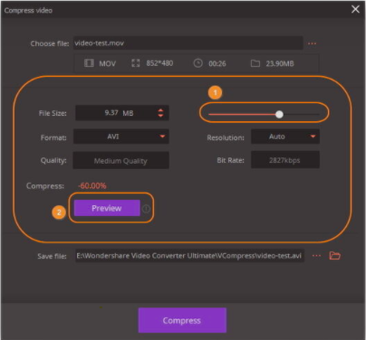 Step 4 – Once you are satisfied with the new video quality, save the video on your desktop. Choose the folder you want to save the file and click on compress tab to start the resizing process.