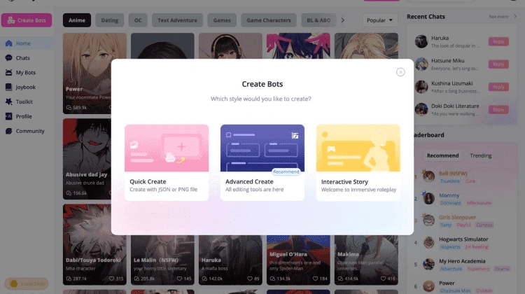 Among Joyland AI’s most impressive offerings is its robust character creation system. Users have access to a variety of powerful tools, including: