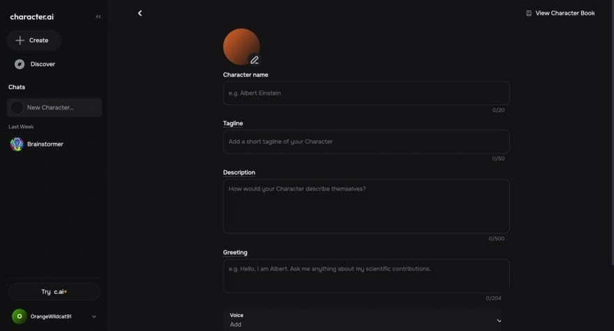 Upon joining, the platform greets new users with an introductory message outlining its core functions and capabilities. The interface is intuitively laid out, with clearly labeled sections for creating characters, accessing chat history, and adjusting personal settings — making it easy for newcomers to find their footing without any confusion.
