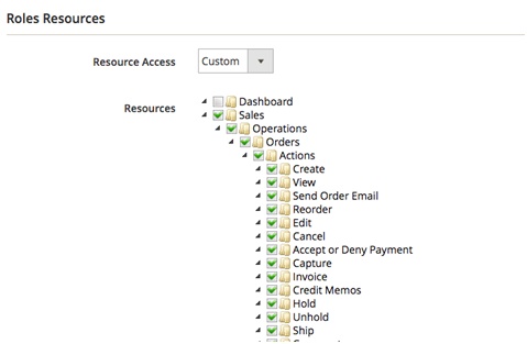 As soon as the role is created, the super admin can choose the resources available to each role assignee. These include orders, products, customers, invoices, and many others.