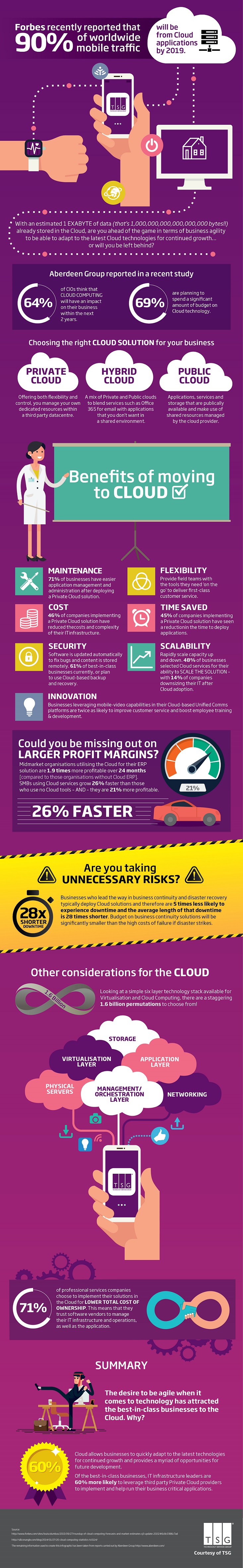 Below is an impressive infographic by UK IT Support company TSG, where you’d understand why you should upgrade to Cloud environment, probably before 2019, when 90% of entire web traffic is expected to be using cloud resources.