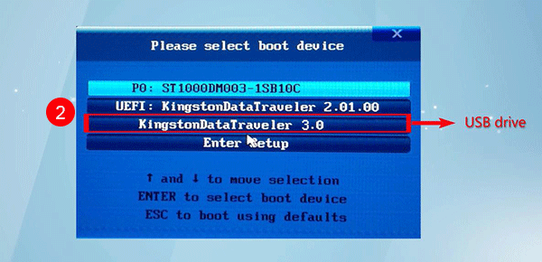 After the recording, there are still two more important steps like this, which are what will allow execute the purpose of the program. You need to connect the password reset disk with the locked computer and make it boot from the USB flash drive. In some computers it is enough to press the F8 or ESC key repeatedly until the menu appears, but not all manufacturers offer the same key to open it, so you have to investigate a bit on the Internet which is the key that opens those options in your computer.
