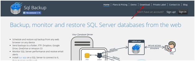 Setting up SqlBak is very easy. You just need to go to Sqlbak.com and click Downloadas shown in the screenshot below: