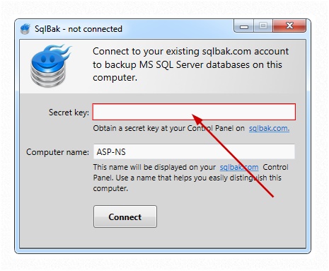 You will be asked to enter Secret Key in the app which helps you connect the app to your account at sqlbak.com