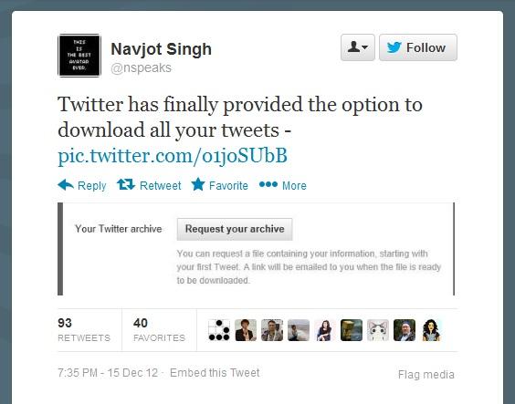 Twitter Now Lets You Download Your Tweet Archive