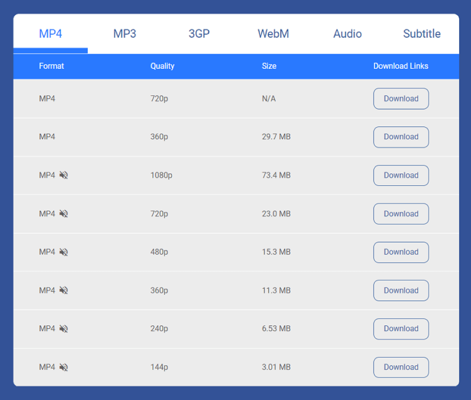 - On the download page, choose a suitable output format and quality.