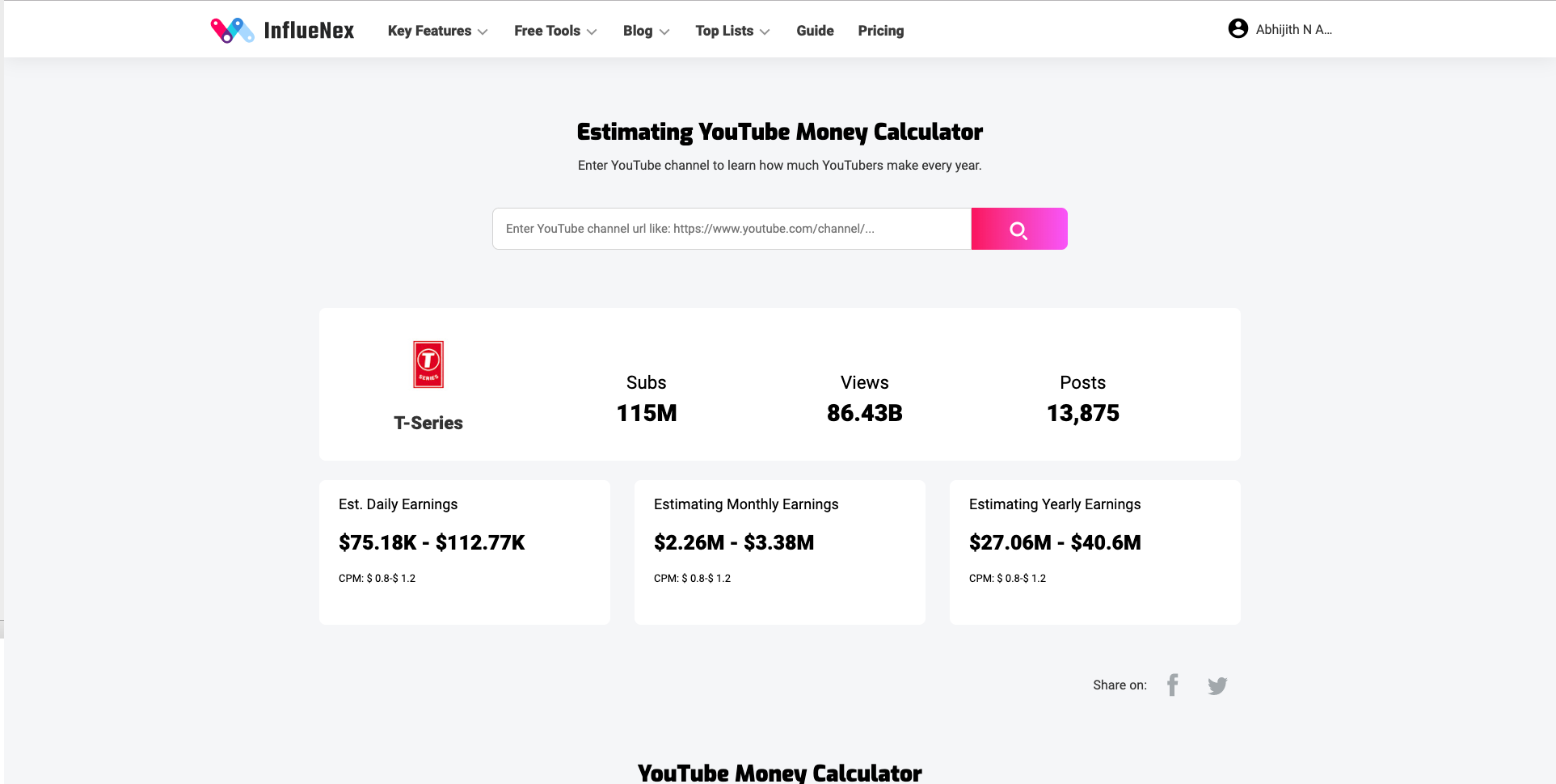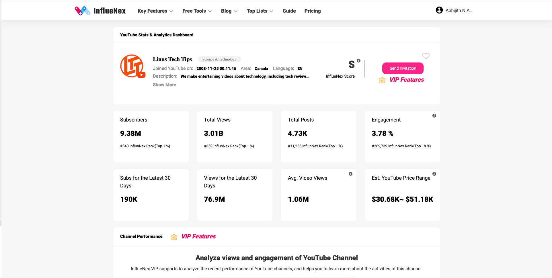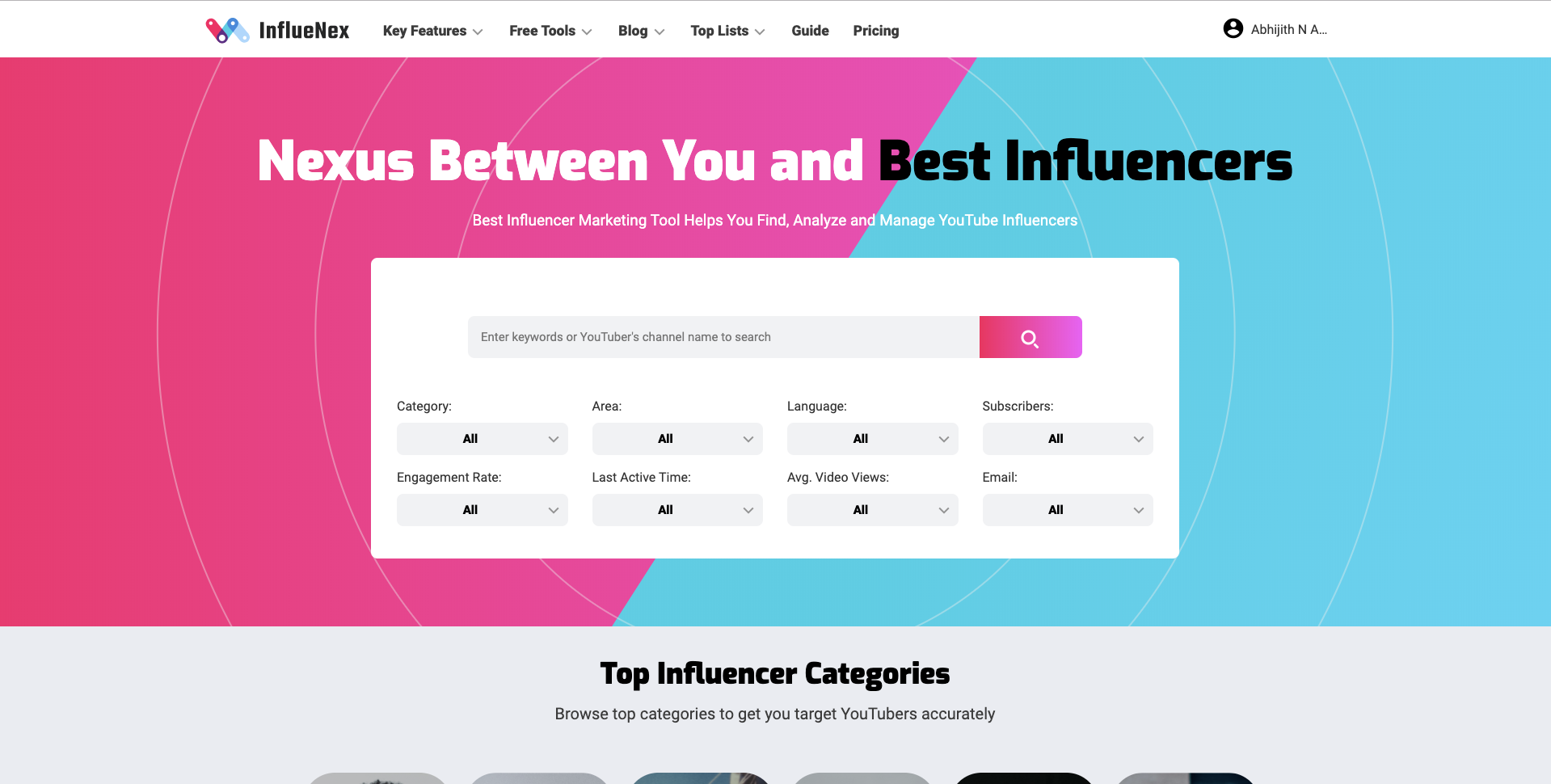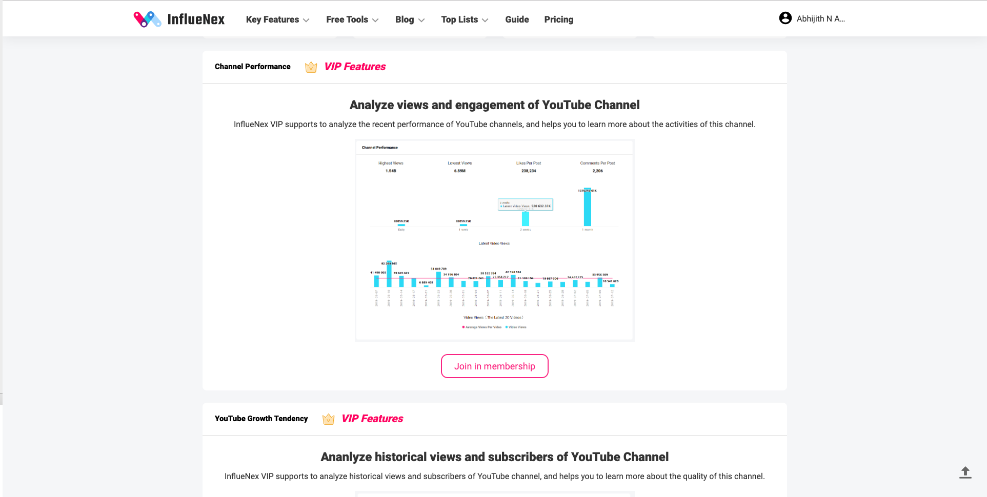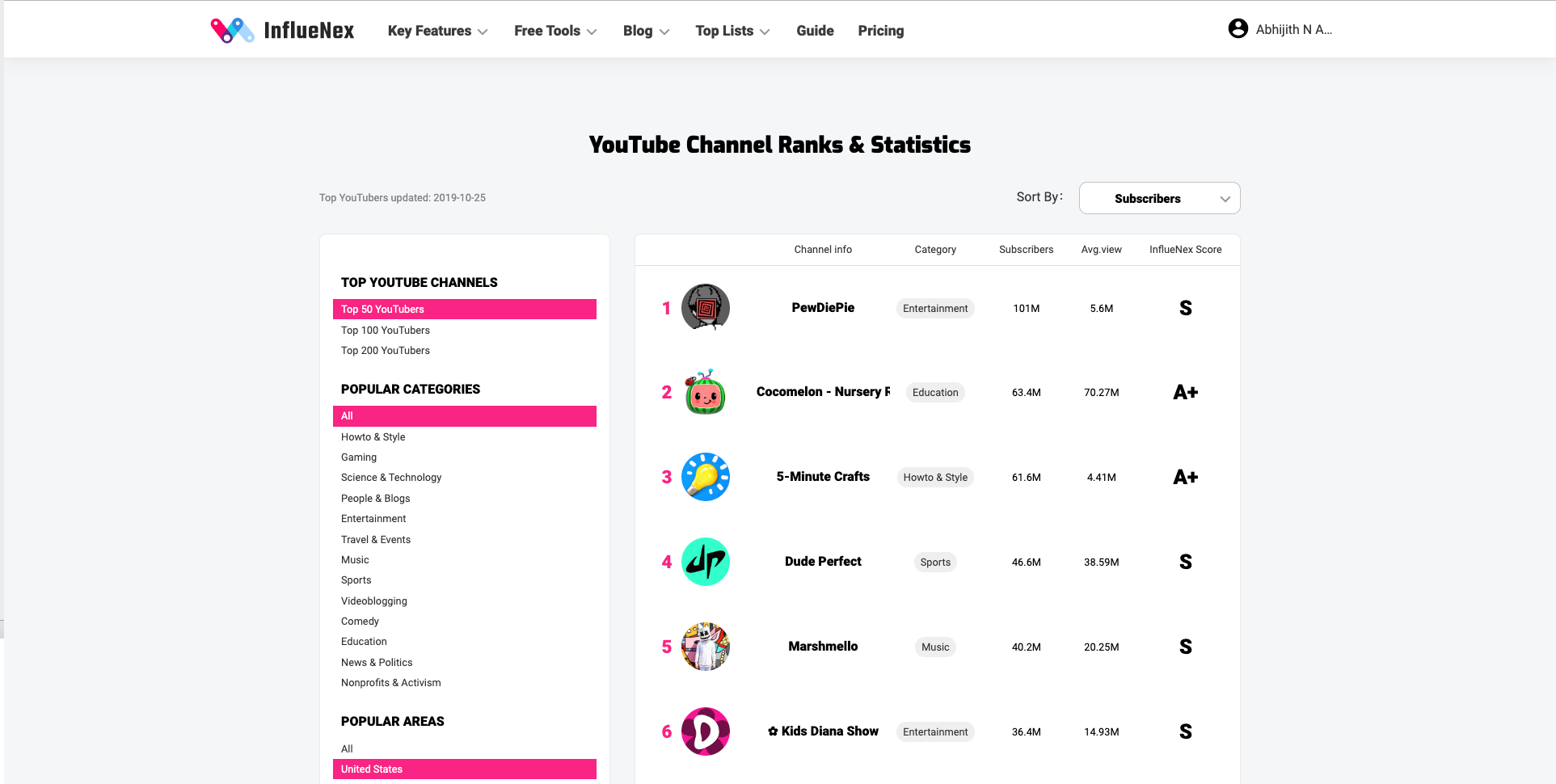 • InflueNex also provides a variety of marketing material that you can use for keeping up the right set of stats. For instance, you can check out the most popular YouTube channels in your area to find out the right channels to invest in.