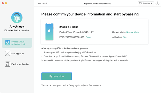 There are 5 easy steps that users need to follow as they use AnyUnlock – iCloud Activation Unlocker to bypass the iCloud activation lock. The easy interface makes sure that you do not face any problem with the software while using it.