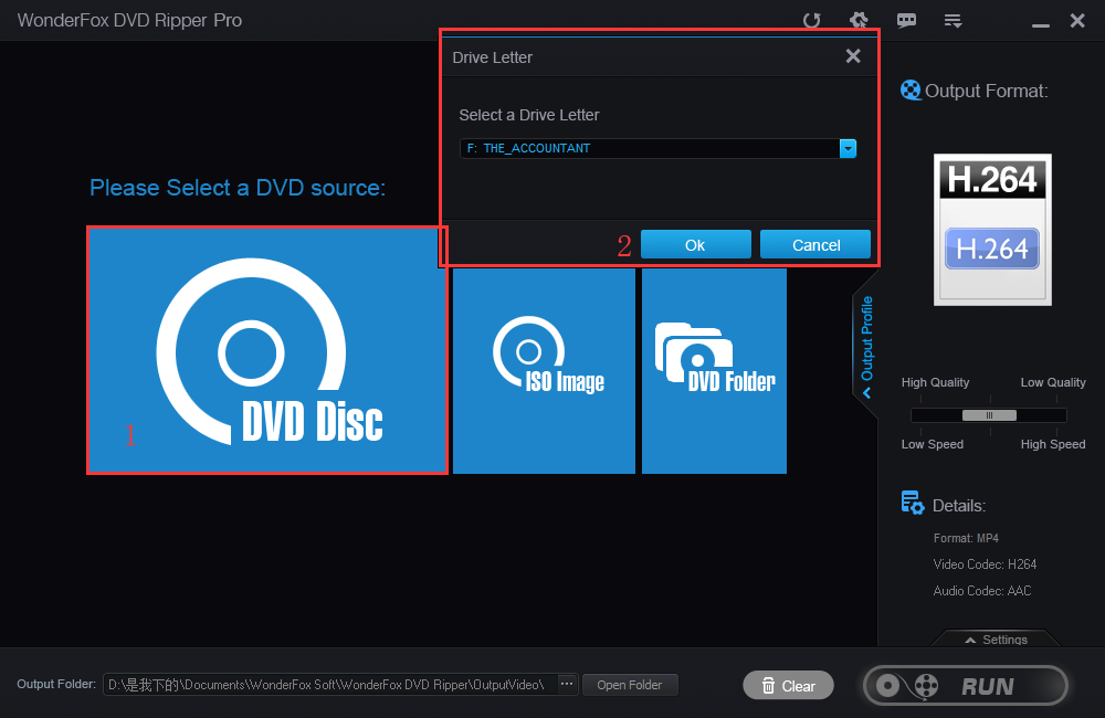 Take the input DVD disc as an example, click to “DVD Disc”, select a drive letter, and click the OK button.