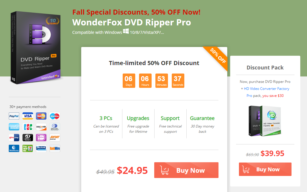 WonderFox DVD Ripper Pro is currently in version 12.1. It has a trial version for you to see what it is, but to unlock all the tools, you must make a payment of $29.95.  Actually the original price is $49.95! Click on this purchase link and you will receive a discounted price for $24.95! And this software is suitable for 3PC.