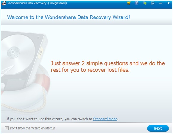 You will be greeted with a data recovery wizard the first time you open the data recovery software. The wizard is your all-time helper with data recovery. You can choose to disable this wizard once you get familiar with the app. But until you’re new to this, the wizard is a boon.