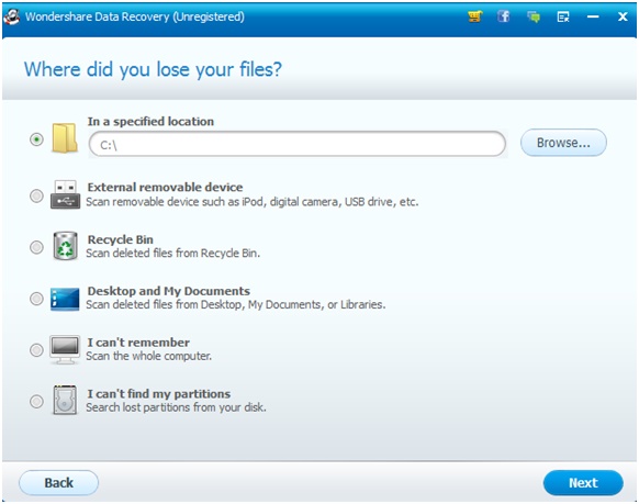 Recover from anywhere you want to –your hard disk partition, USB Flash Drive, your libraries (Desktop, Documents, Pictures, Videos) or even your recycle bin. Wondershare Data Recovery is capable enough to hunt for your file from any of these places. Likewise, if you don’t remember from where you deleted the file, there’s an option for that too!